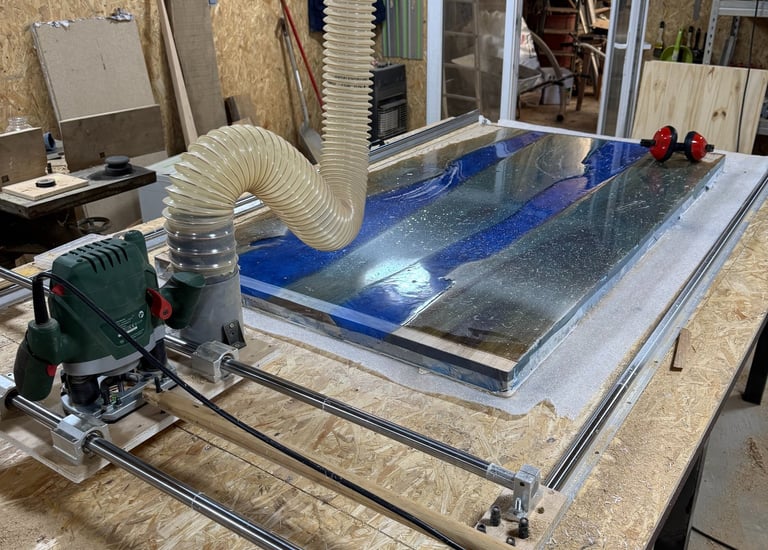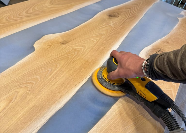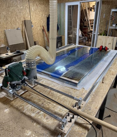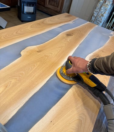 Découvrez notre passion pour le mobilier en bois et époxy, fabriqué à la main avec soin et qualité dans notre atelier.